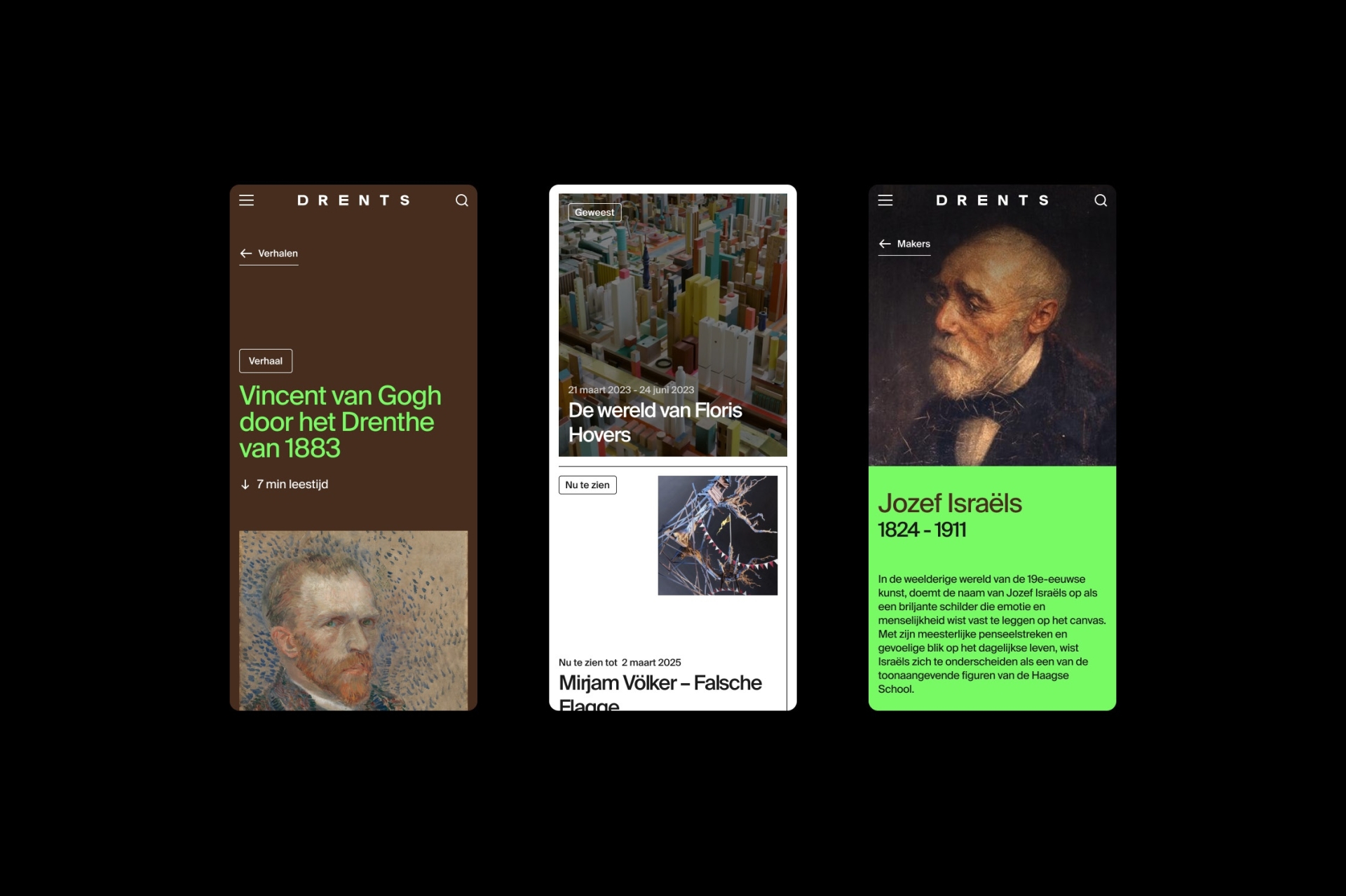 Visual identity for Drents Museum. Widely known for its international archaeological exhibitions, figurative art and, among many others, works by Van Gogh. In close collaboration we developed a new identity that helps the museum connect with existing and new audiences in a rejuvenated way. With a look that matches the ambition to be (inter)nationally recognized and fulfill the need to surprise. Meet ’the Drents’.