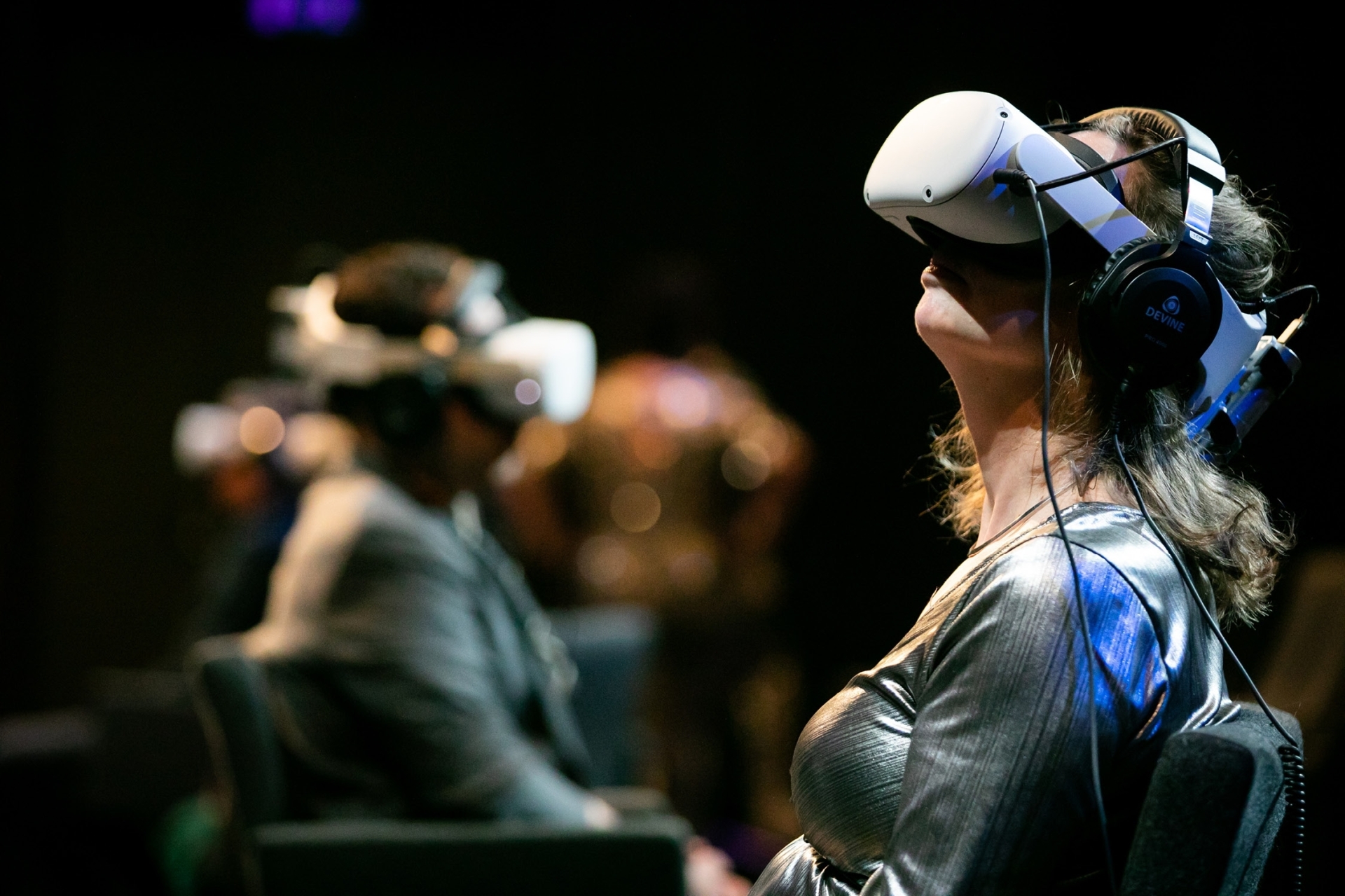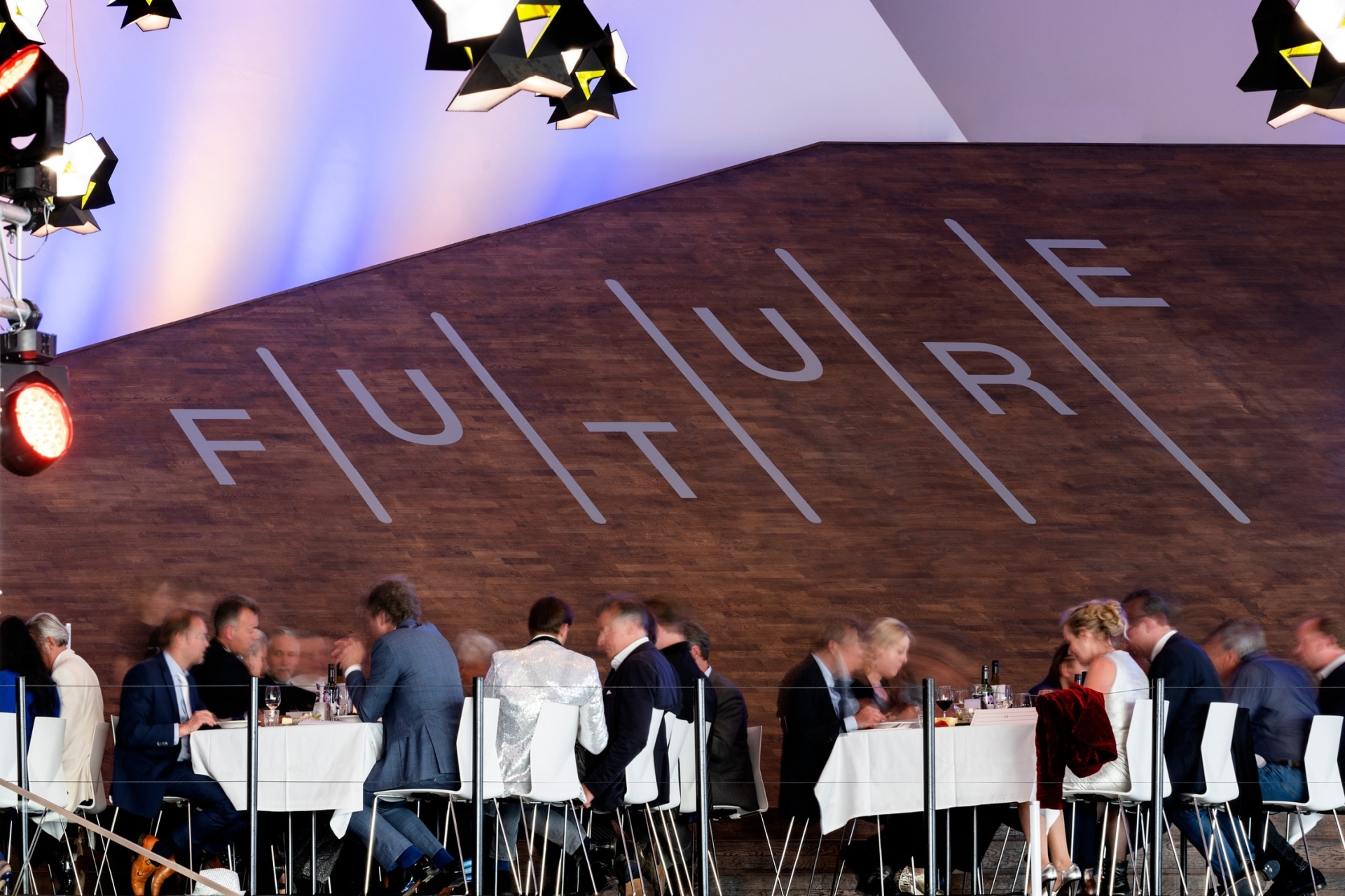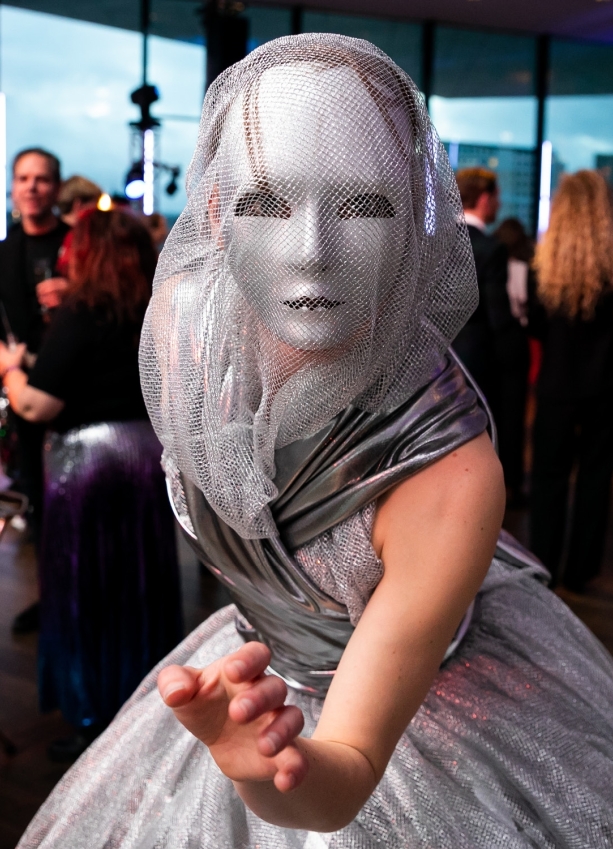 During the annual Film Ball professionals from the film industry and other creatives join to celebrate the magic of film. Previous editions of the Film Ball were themed with a color. The 10th anniversary at the IJ location called for something special. Under the moniker 'The Future' and dress code 'A touch of silver', this year's theme was aptly suited to the location. The futuristic building - designed by Austrian Delugan-Meissl Associated Architects - is reminiscent of a spaceship from a science fiction movie.