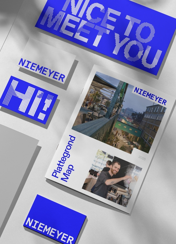 The Niemeyer area carry a rich history. In the visual identity, past and future come together. The logo and colors build on recognizable elements from the past. The flexible design system and headline typography makes every expression recognizable and conveys a sense of constant evolution. Because Niemeyer is always in development.