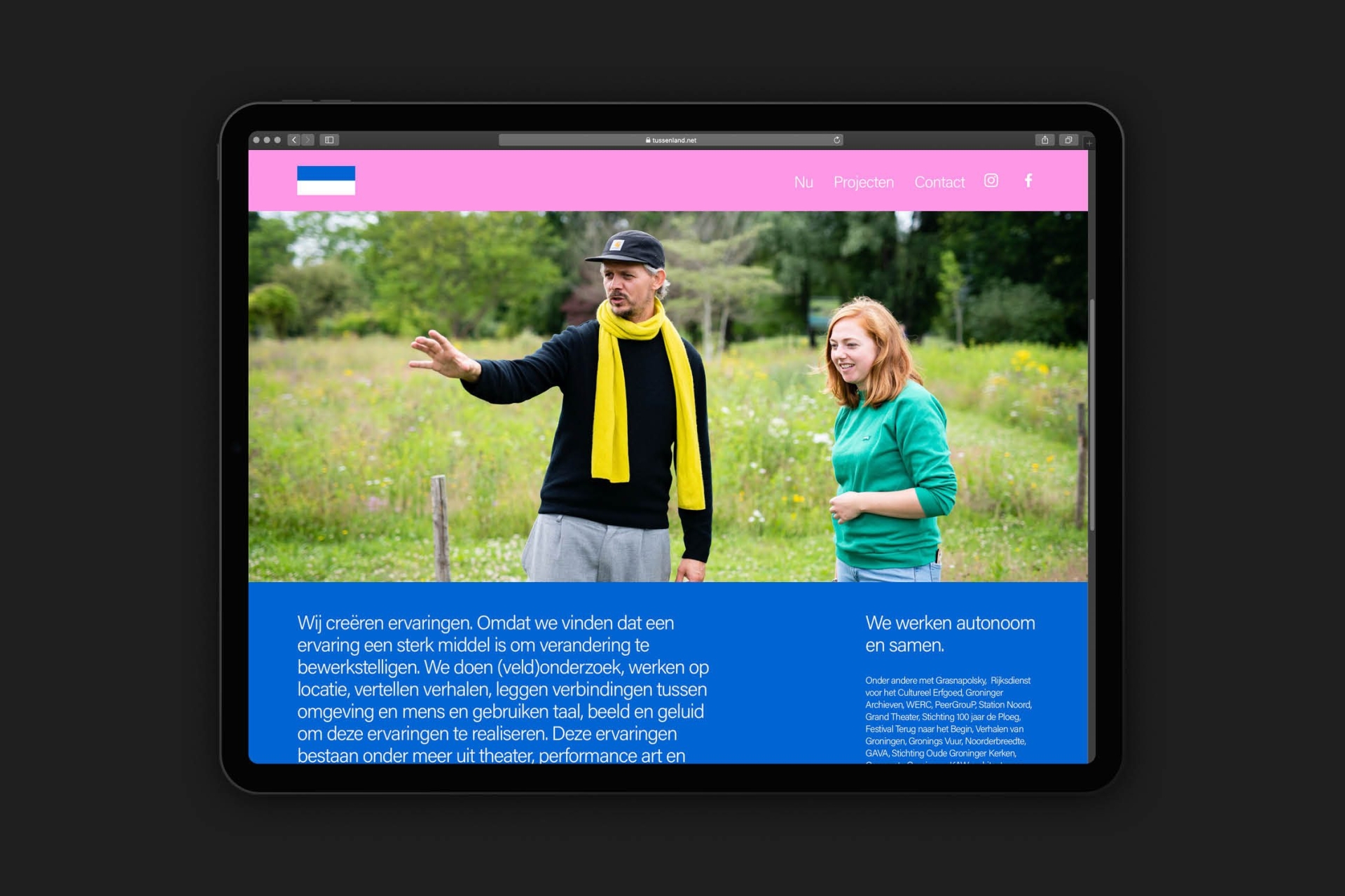 Tussenland let people look at public space in new and conscious ways. Through theater, performance and visual art. To create valuable insights and inspire to new ways of living and living together. We created the new visual identity.