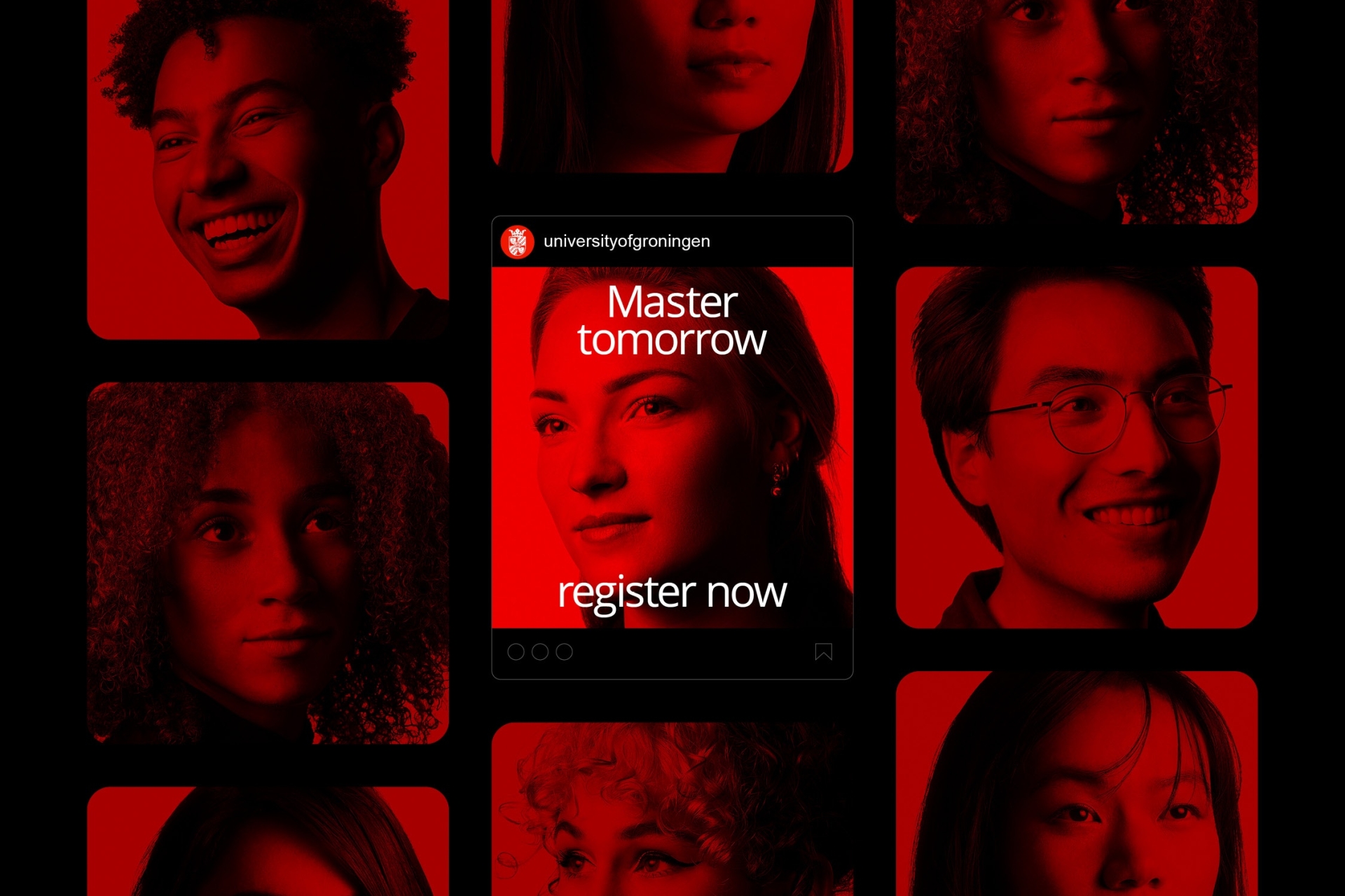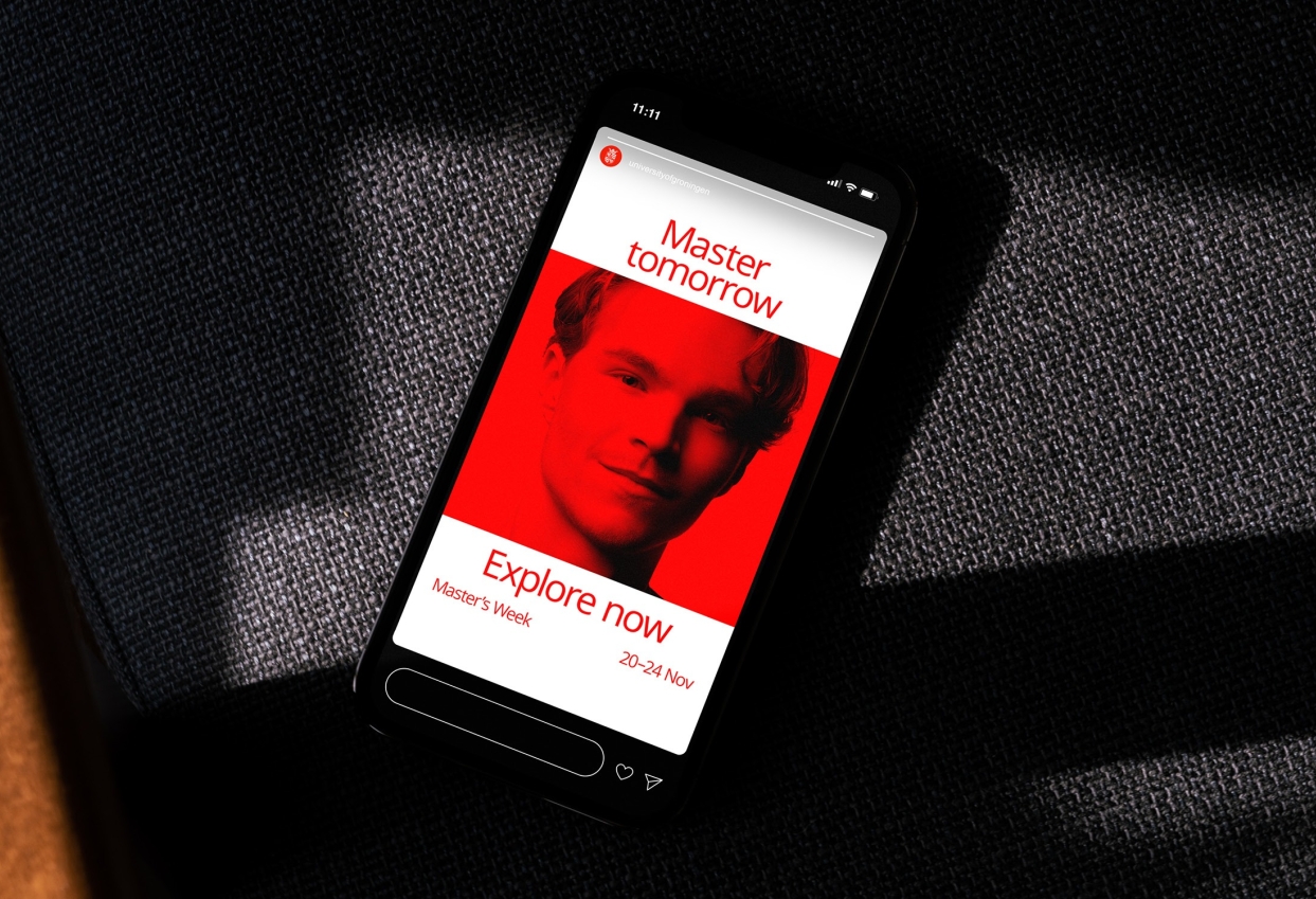 Design and art direction for this year’s Masters campaign of University of Groningen to convince future Master students of the benefits and opportunities of being part of its diverse and international community. An international top 100 university, located in the heart of academic Europe with over 120 master programmes.