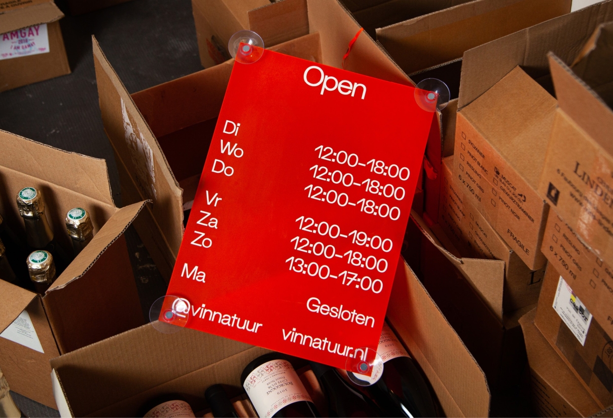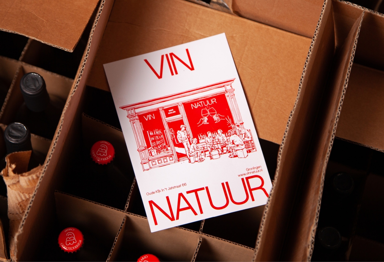Visual identity and art direction for Vin Natuur, wine dealer in Groningen, The Netherlands. Vin Natuur believes in natural vinification. This means, as little intervention as possible, both in the vineyard and in the wine cellar. To provide a more versatile palette of flavours and scents.